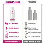 Using clean hands, squeeze a generous amount of lubricunt into your hand and use your fingers to warm up the gel. Apply on your 🐱 or his 🍆 and enjoy!