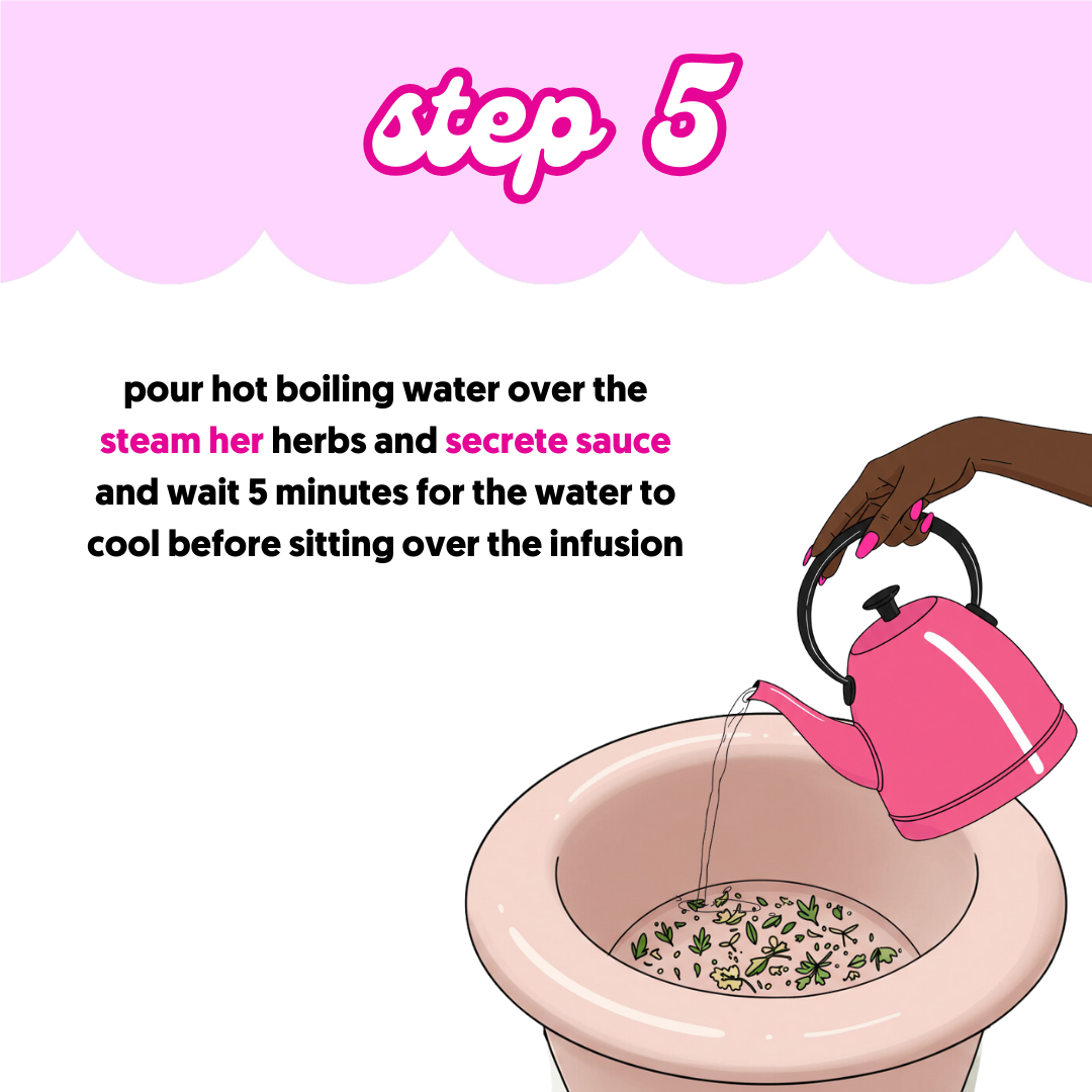 Steam Her ® is a secret blend that contains hibiscus, lavender, eucalyptus, jasmine, Cnidium, and sarsaparilla root. These all-natural herbs help with itching, tightening, odour, inflammation, discharge, and bacteria. This blend of herbs is gentle enough for frequent use but powerful enough to balance your pH.