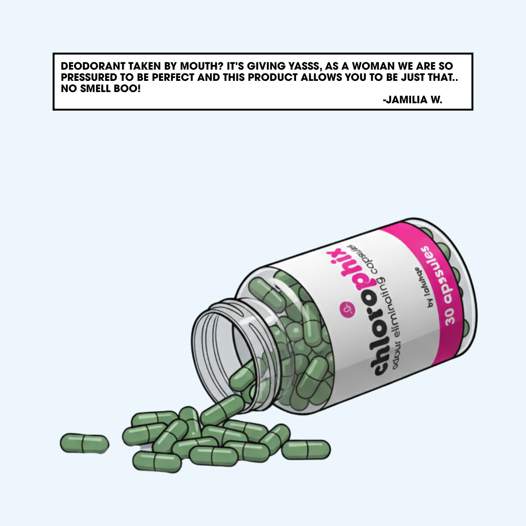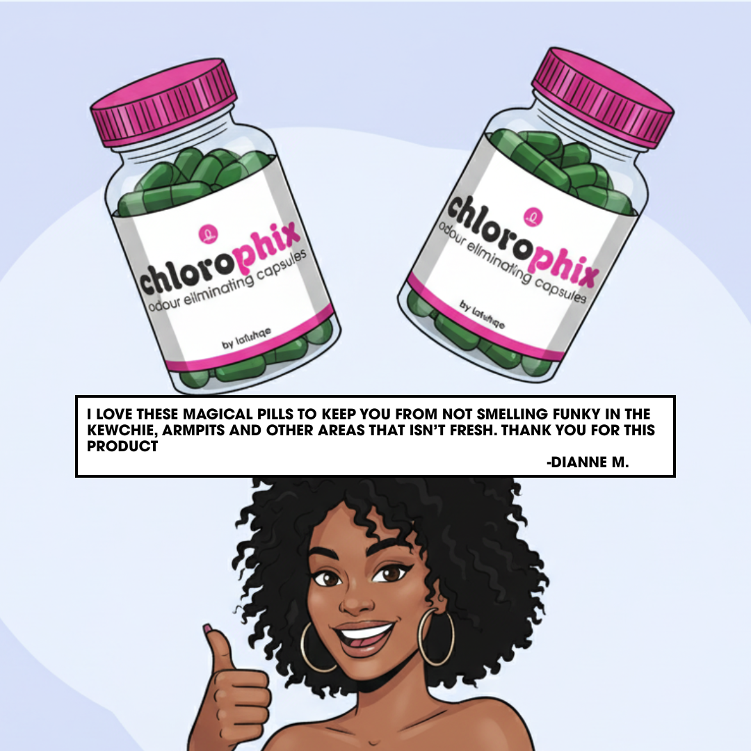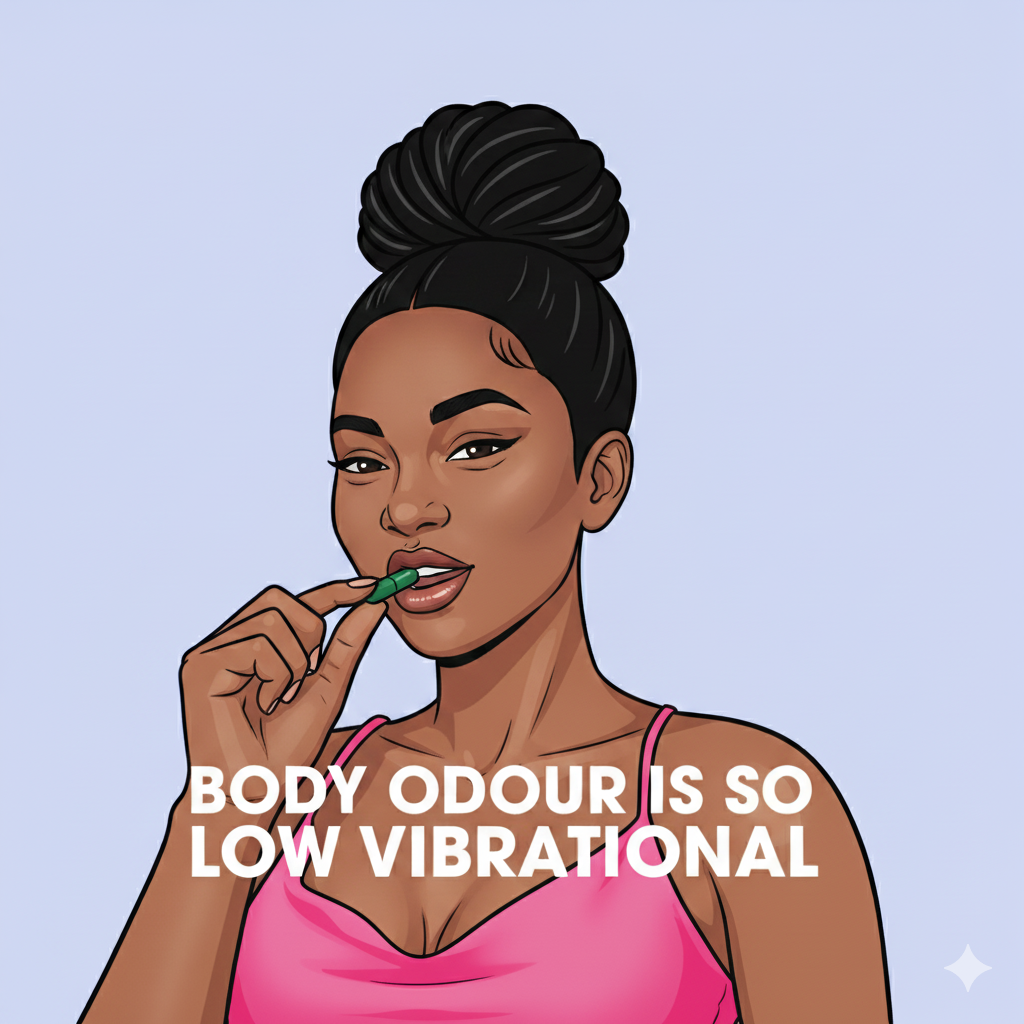 Take 1 capsule orally each morning to completely stop bad breath, sweaty smells and to neutralize toxins in your body. Chlorophyll works quickly to eliminate odour causing particles. You'll notice that after just a few days you no longer have stinky armpits, offensive breath or any unpleasant smells but please, you still need to brush your teeth and take a bath girl. Be so fuhqing for real!