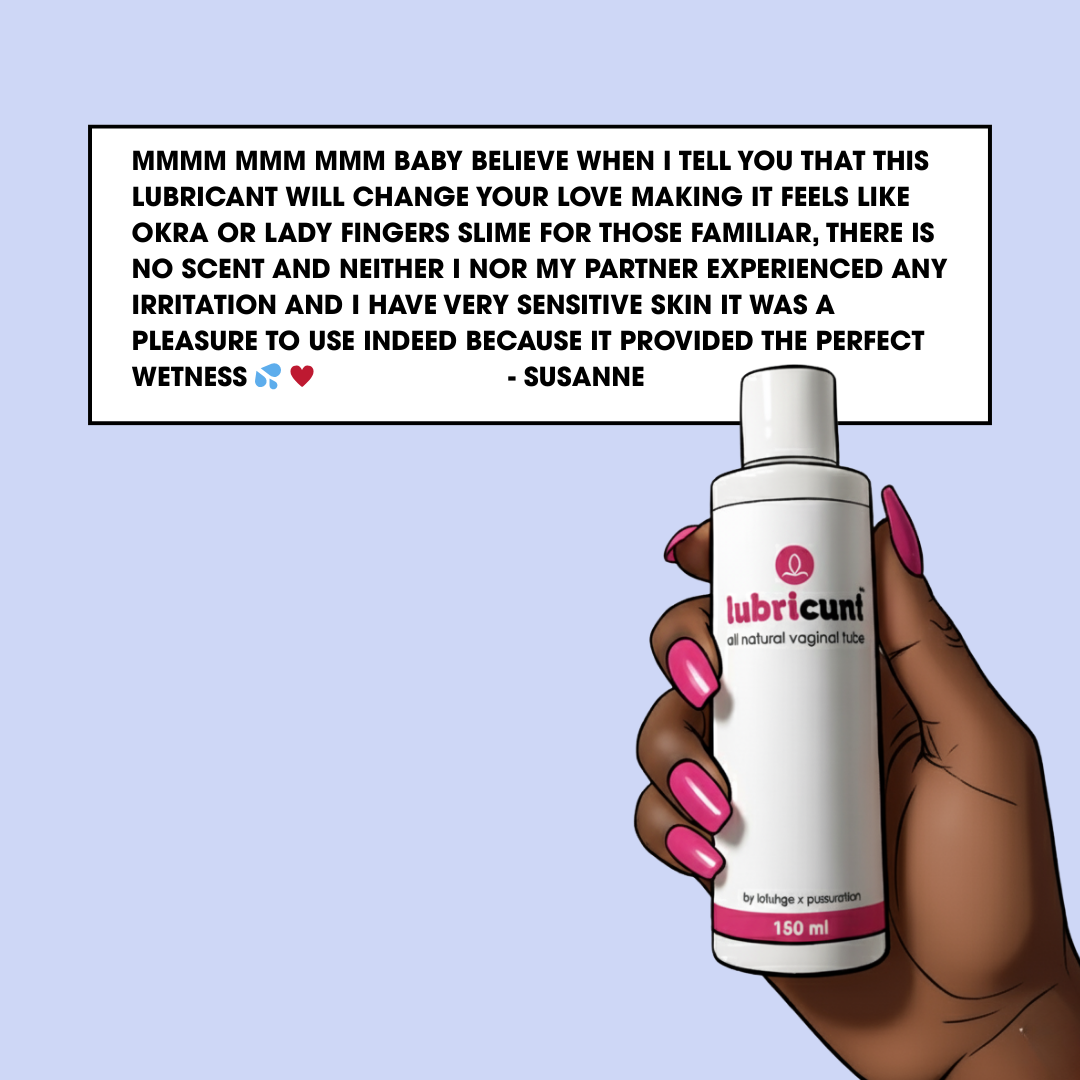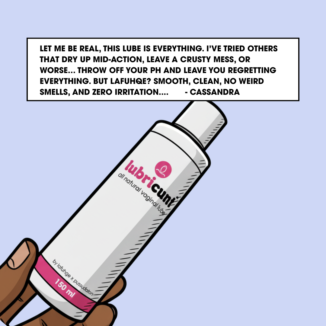 Using clean hands, squeeze a generous amount of lubricunt into your hand and use your fingers to warm up the gel. Apply on your 🐱 or his 🍆 and enjoy!