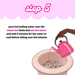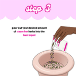 Steam Her ® is a secret blend that contains hibiscus, lavender, eucalyptus, jasmine, Cnidium, and sarsaparilla root. These all-natural herbs help with itching, tightening, odour, inflammation, discharge, and bacteria. This blend of herbs is gentle enough for frequent use but powerful enough to balance your pH.