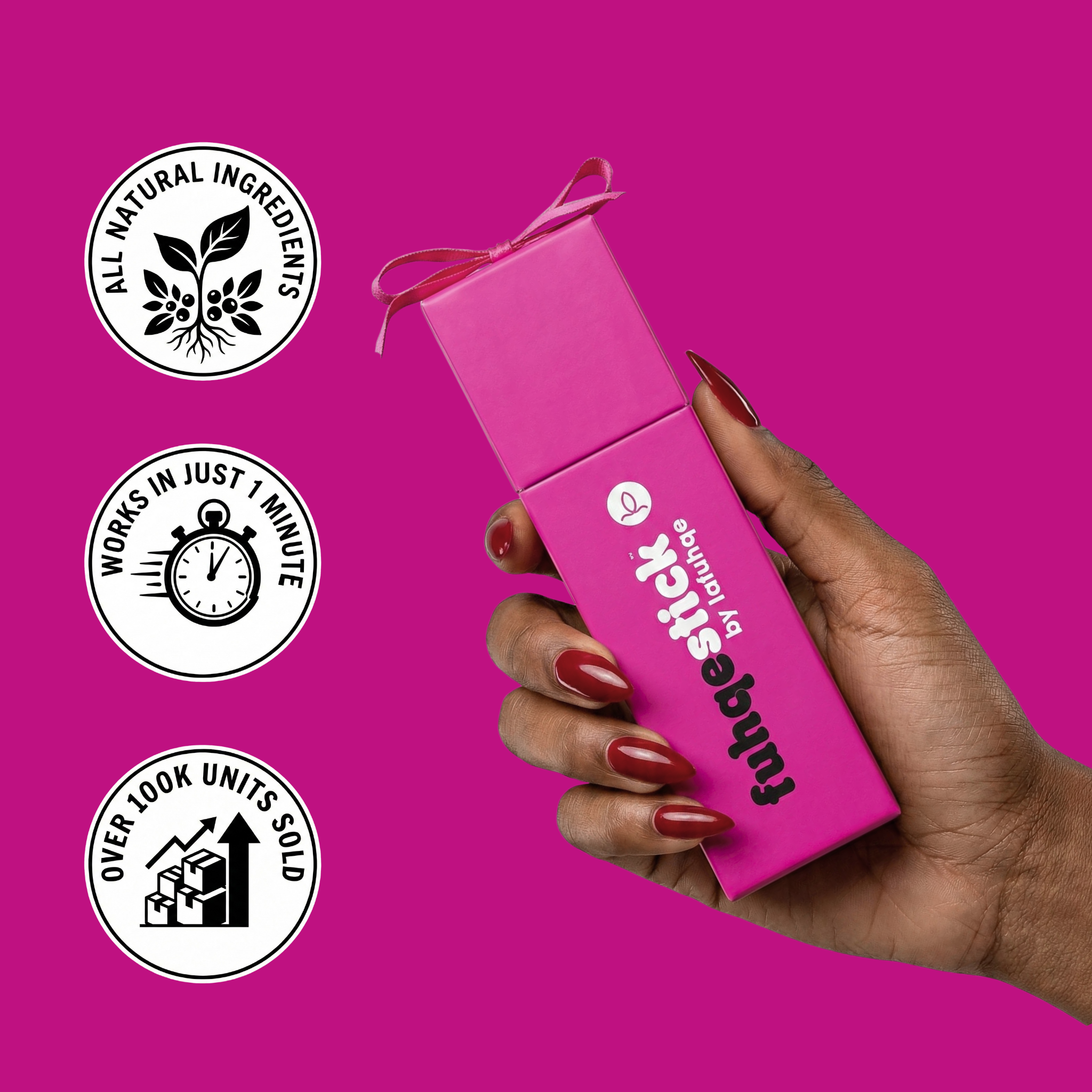 Product being applied to skin with 'All Natural' and 'Just Like You' text, featuring a brand logo.