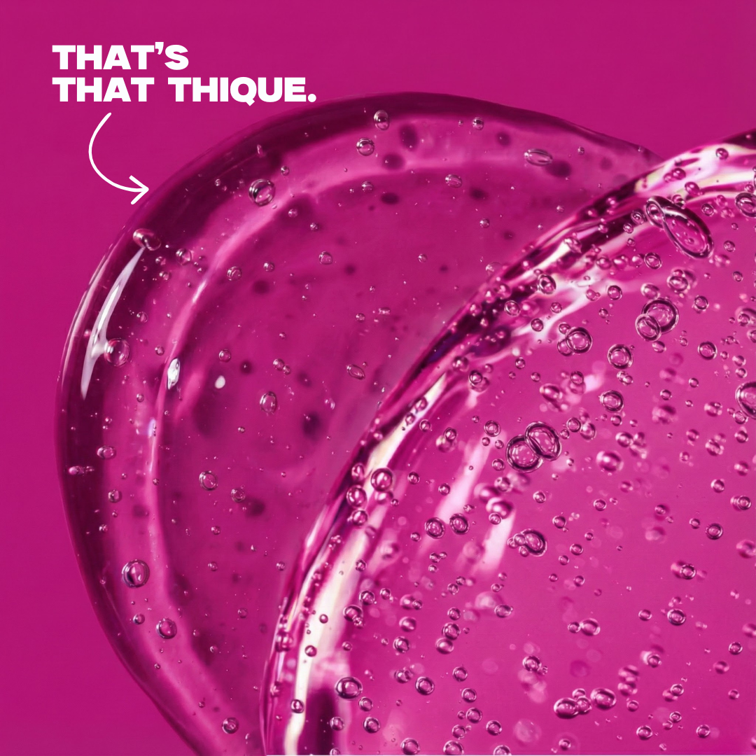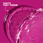 Pink product packaging with text explaining its ingredients and benefits on a white background